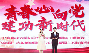 2019年4月27日晚七點(diǎn),在五四運(yùn)動(dòng)100周年即將到來(lái)之際,北京科技大學(xué)舉行“青春心向黨 建功新時(shí)代”——紀(jì)念五四運(yùn)動(dòng)100周年主題歌會(huì)暨“我和我的祖國(guó)”慶祝新中國(guó)成立70周年愛(ài)國(guó)主義教育活動(dòng)啟動(dòng)儀式。